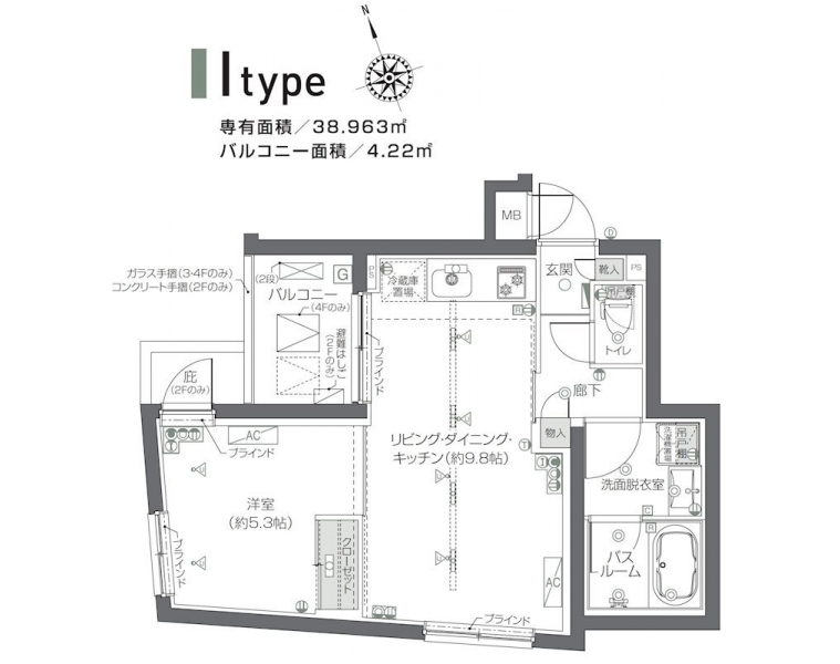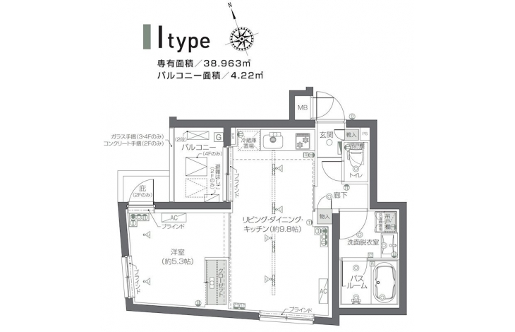 | 専有面積 | 38.96m² | バルコニー面積 | |
