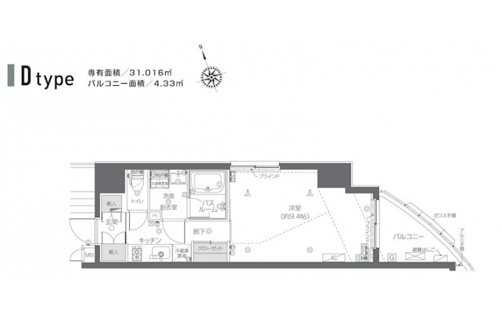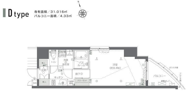 | 専有面積 | 31.01m² | バルコニー面積 | 4.33m² |