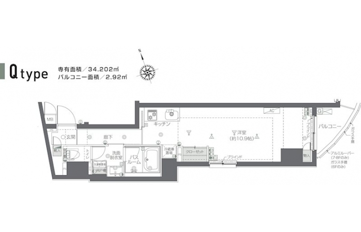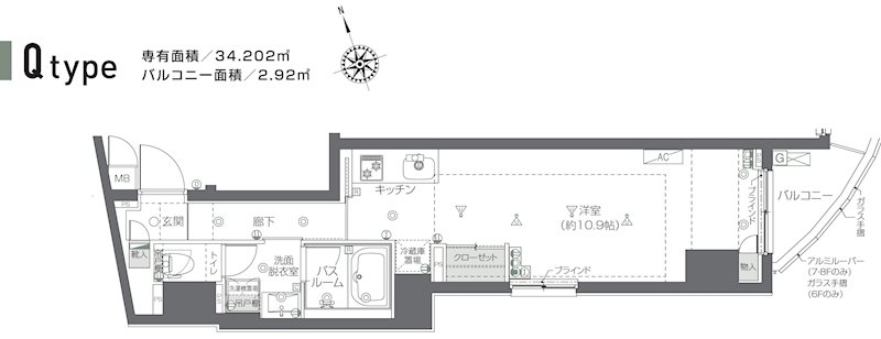 | 専有面積 | 34.20m² | バルコニー面積 | 2.92m² |