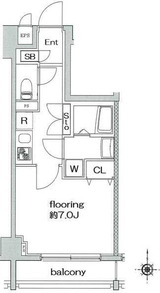 | 専有面積 | 25.47m² | バルコニー面積 | 3.70m² |
