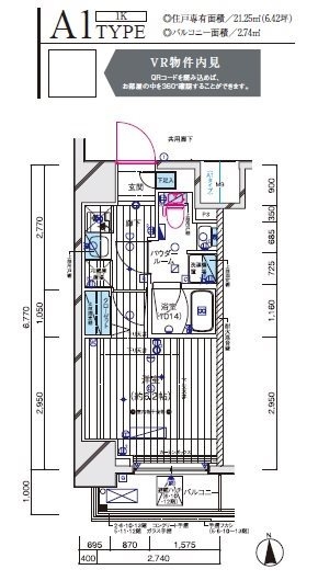 | 専有面積 | 21.25m² | バルコニー面積 | |
