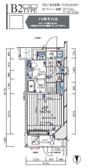 | 専有面積 | 21.25m² | バルコニー面積 | 2.74m² |