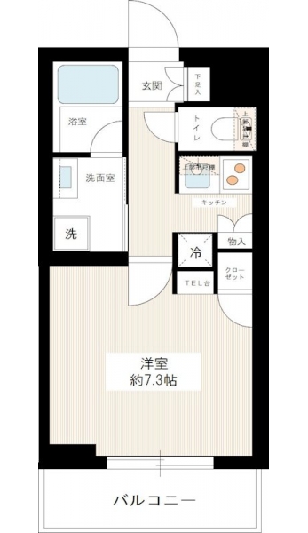 洋室 7.3 畳 3 階 K 2.5 畳 3 階 |