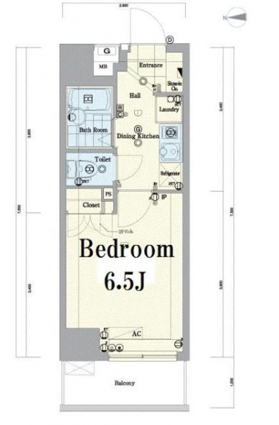 K 2 畳 洋室 6.5 畳 |