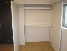 棚付きで容量も充分。洋服などを効率的に収納できます。