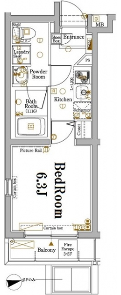 | 間取り | 1K | 階建 | 3階/5階建(B1階) |