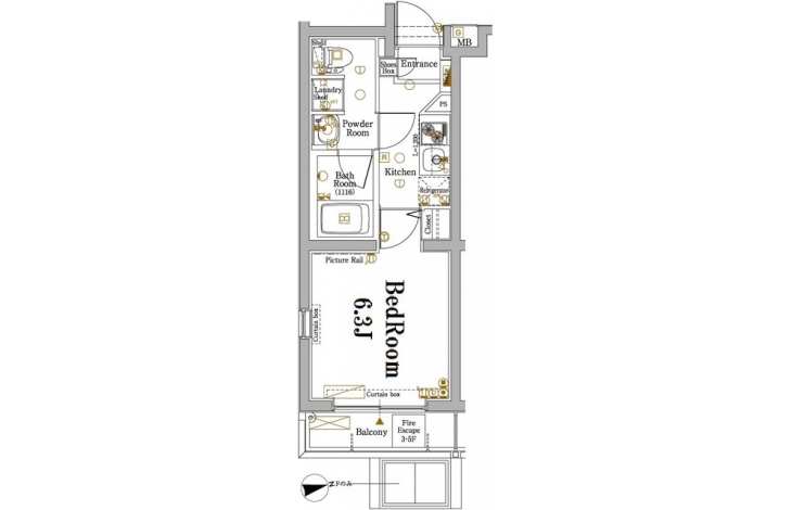 | 専有面積 | 22.11m² | バルコニー面積 | |