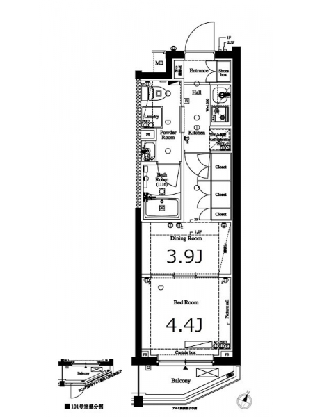 洋室 3.9 畳 洋室 4.4 畳 洋室 4.4 畳 |