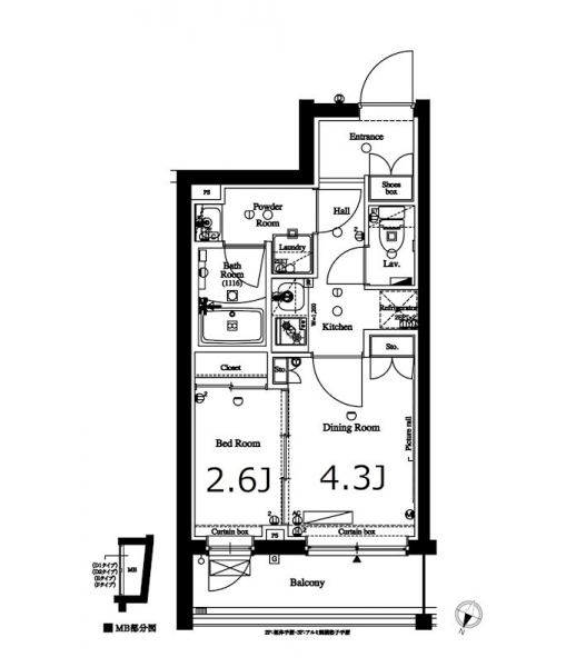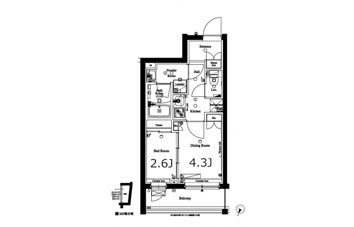 K 2 畳 洋室 4.3 畳 洋室 2.6 畳 |