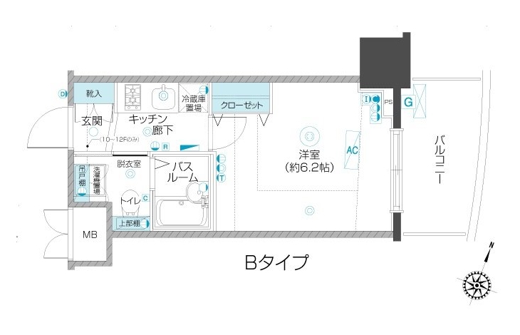 K 2 畳 洋室 6.2 畳 |