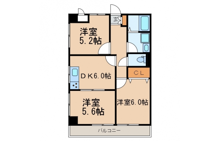 洋室 5.2 畳 洋室 5.6 畳 洋室 6 畳 DK 6 畳 |
