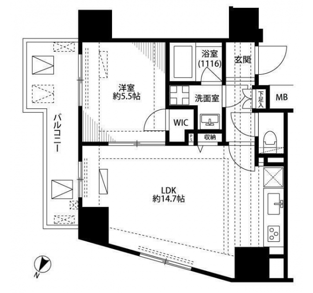 LDK 14.7 畳 洋室 5.5 畳 |