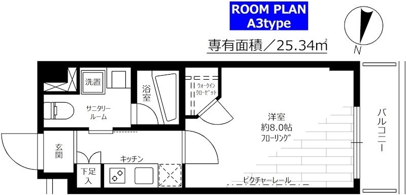 | 専有面積 | 25.34m² | バルコニー面積 | |