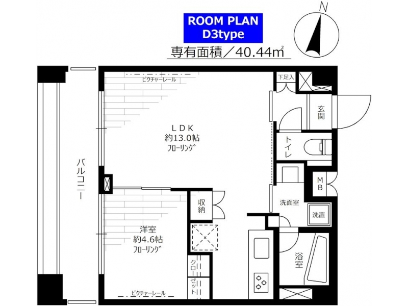 | 専有面積 | 40.44m² | バルコニー面積 | |