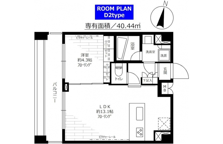 | 専有面積 | 40.44m² | バルコニー面積 | |
