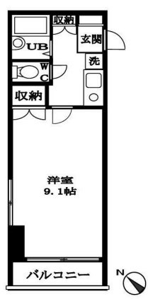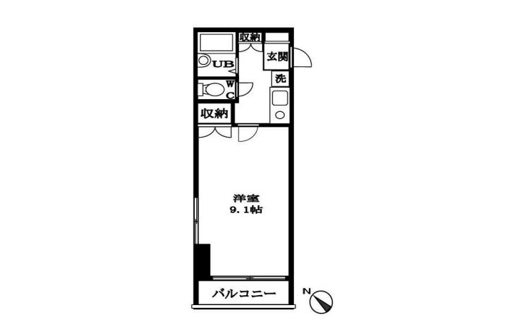 K 2 畳 洋室 9.1 畳 |