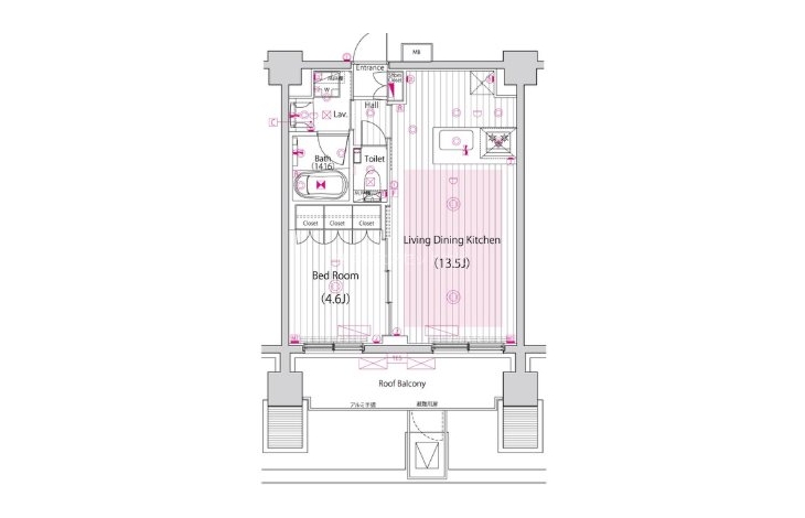LDK 13.5 畳 洋室 4.6 畳 |