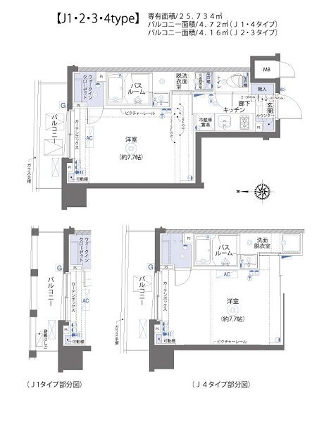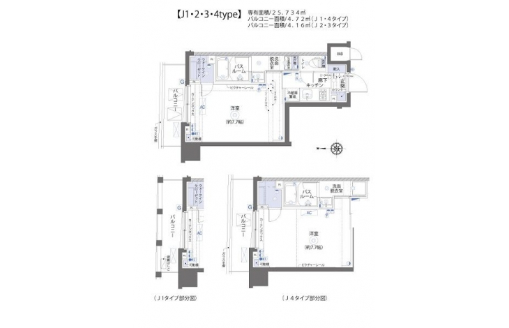 | 専有面積 | 25.73m² | バルコニー面積 | 4.72m² |