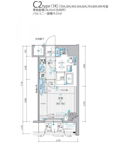 | 専有面積 | 26.45m² | バルコニー面積 | |