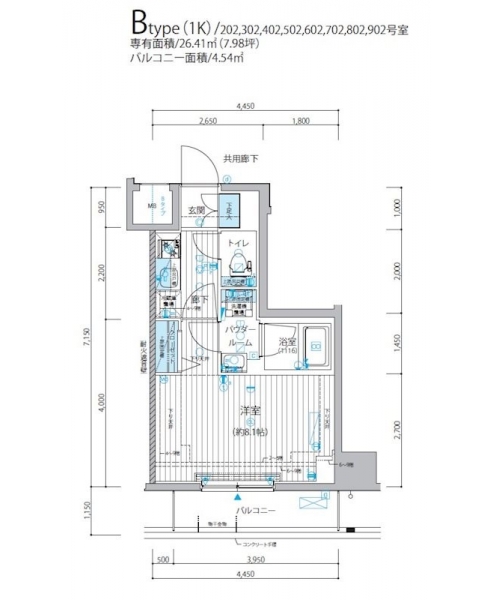| 専有面積 | 26.41m² | バルコニー面積 | |