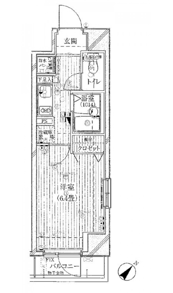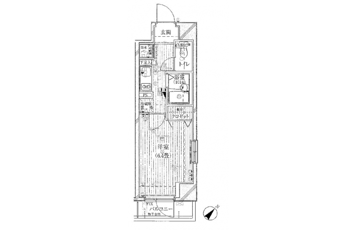 K 2 畳 洋室 6.4 畳 |