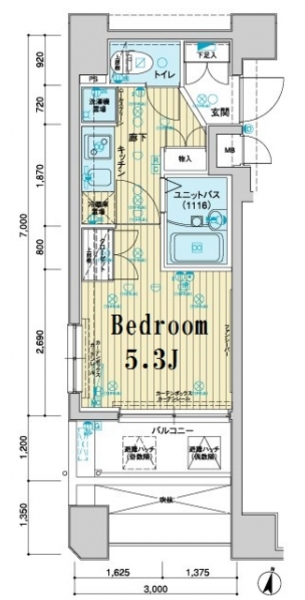 K 2 畳 洋室 5.3 畳 |
