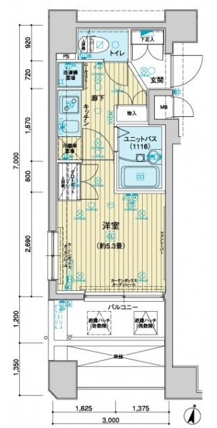 | 専有面積 | 21.13m² | バルコニー面積 | |