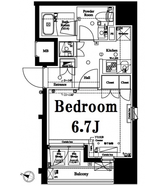 K 2.5 畳 洋室 6.7 畳 |