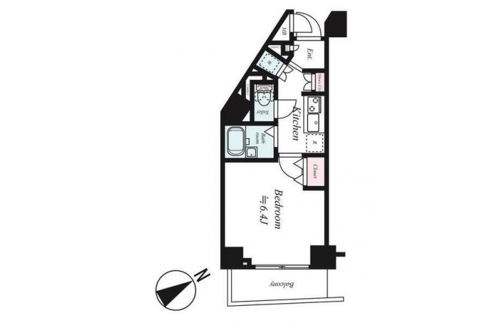K 2 畳 洋室 6.4 畳 |