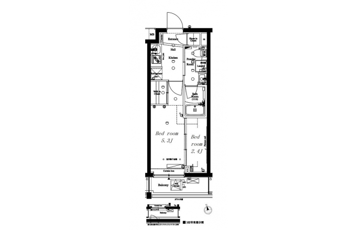 洋室 2.4 畳 洋室 5.3 畳 |