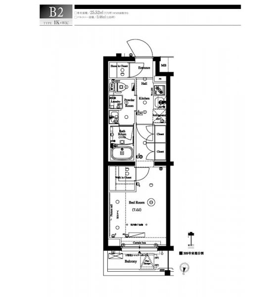 | 専有面積 | 25.52m² | バルコニー面積 | 3.48m² |