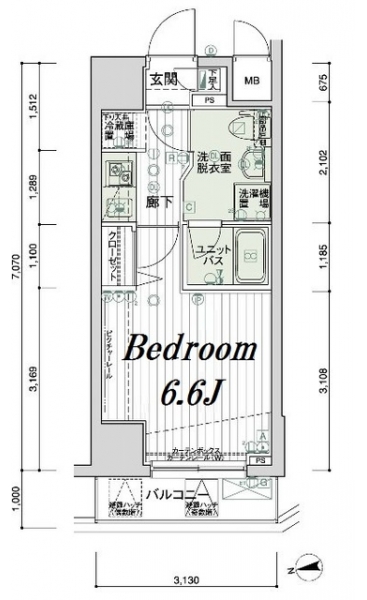K 2 畳 洋室 6.6 畳 |