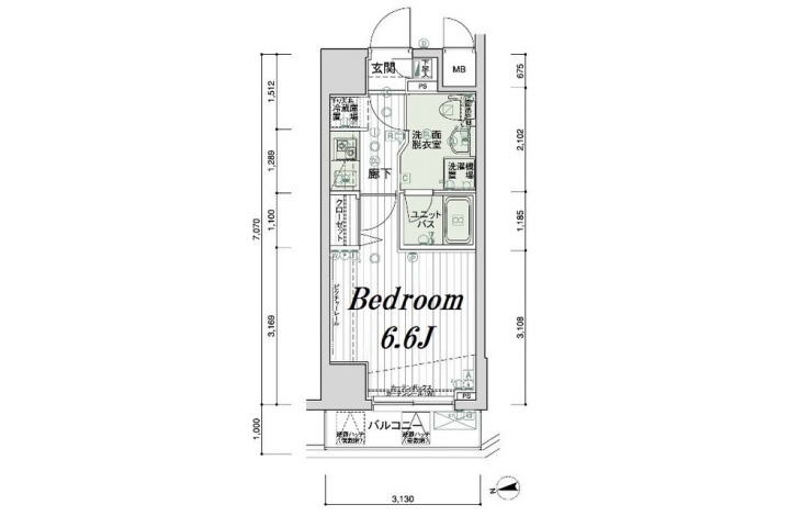 K 2 畳 洋室 6.6 畳 |