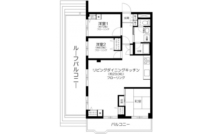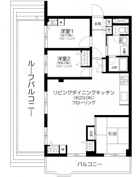 洋室 7 畳 洋室 6 畳 LDK 23 畳 |