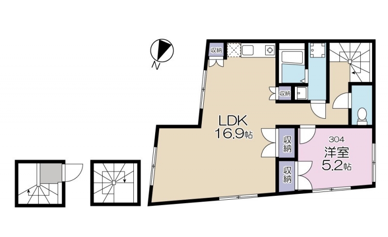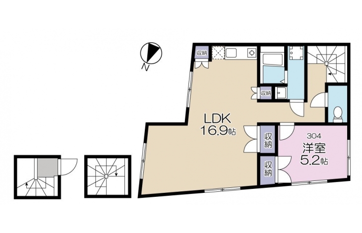 洋室 5.2 畳 3 階 LDK 16.9 畳 3 階 |
