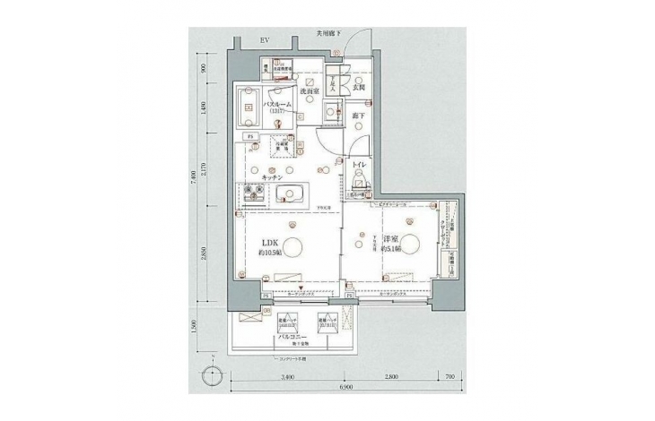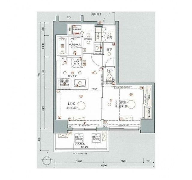 LDK 10.5 畳 洋室 5.1 畳 |