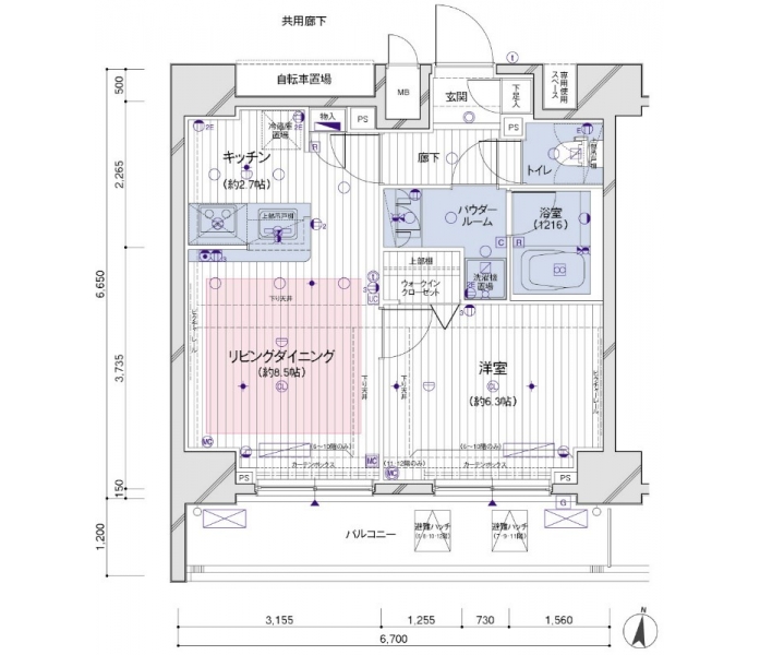 | 設備・条件 | BSアンテナ、CSアンテナ、光ファイバー、オートロック、TVドアホン、防犯カメラ、ディンプルキー、ダブルロックキー、宅配ボックス、駐輪場、エレベータ、2階以上、角部屋、南向き部屋、システムキッチン、カウンターキッチン、バス・トイレ別、温水洗浄便座、浴室乾燥機、室内洗濯機置き場、洗濯機置き場有、フローリング、24時間換気システム、エアコン、床暖房、ウォークインクローゼット、バルコニー、分譲賃貸、日当たり良好、敷金なし、ペット相談 | ||