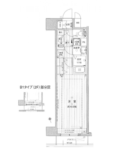 K 2 畳 洋室 10.5 畳 |