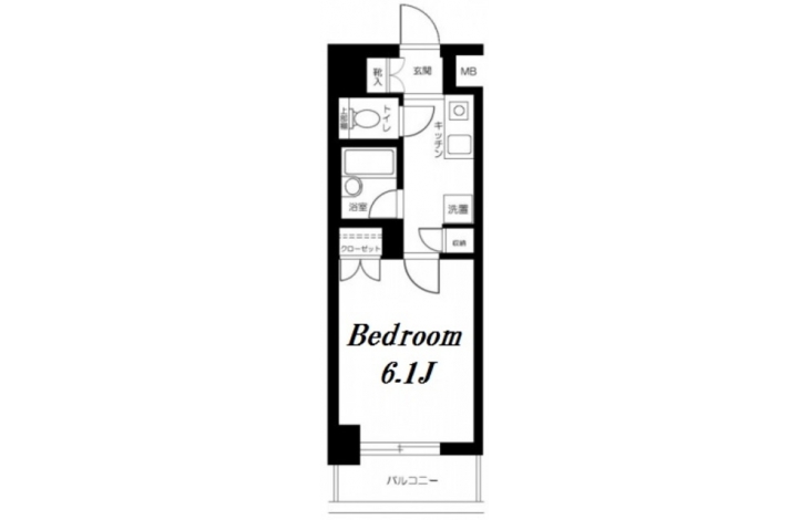K 2 畳 洋室 6.1 畳 |