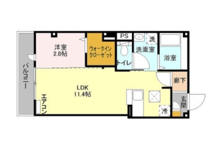 洋室 2.8 畳 LDK 11.4 畳 |