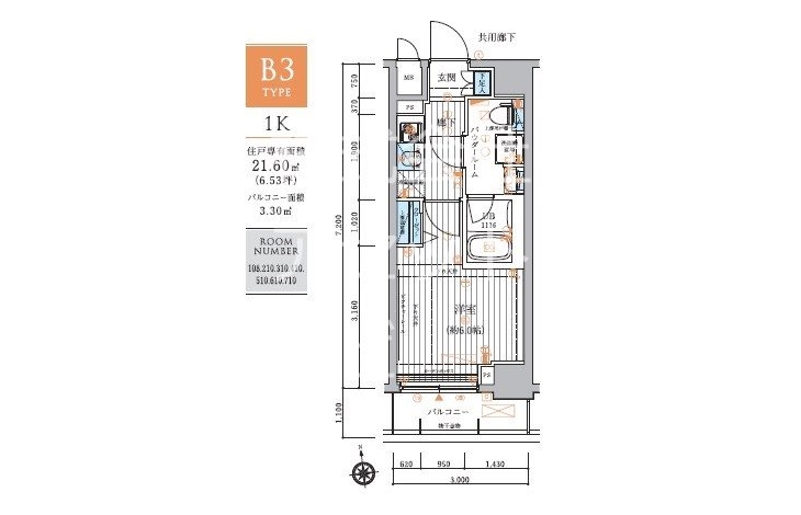| 専有面積 | 21.60m² | バルコニー面積 | |