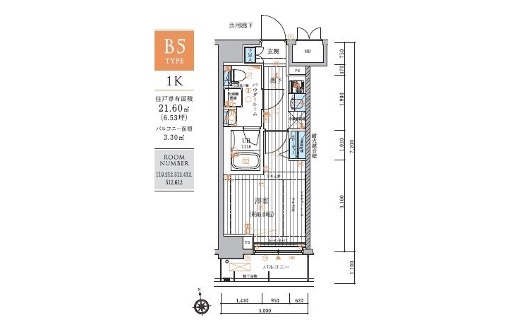 | 専有面積 | 21.60m² | バルコニー面積 | |