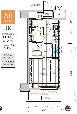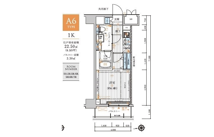 | 専有面積 | 22.50m² | バルコニー面積 | |