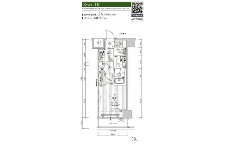 | 専有面積 | 26.04m² | バルコニー面積 | |
