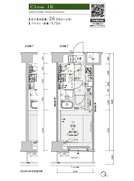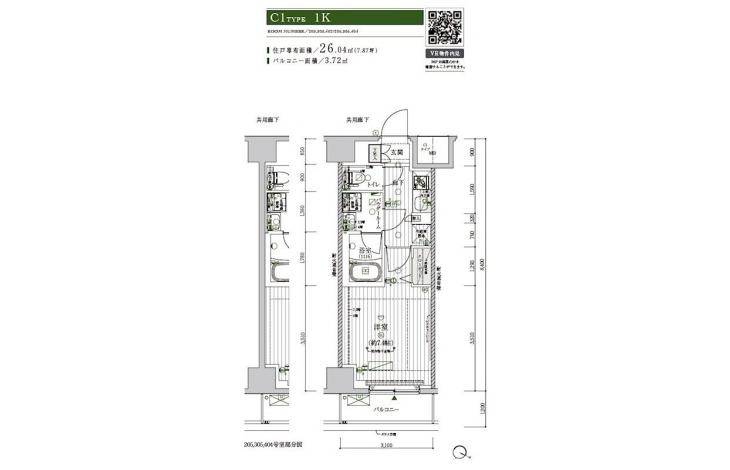 | 専有面積 | 26.04m² | バルコニー面積 | |