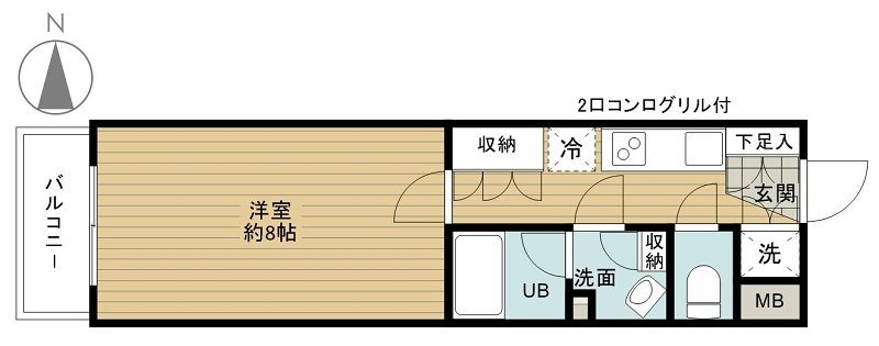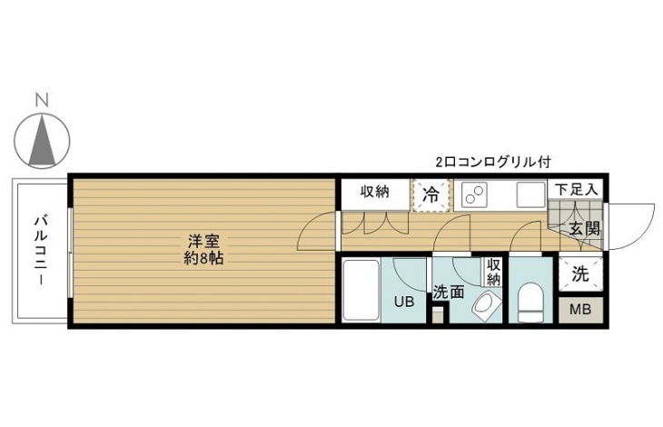 K 2 畳 洋室 8 畳 |