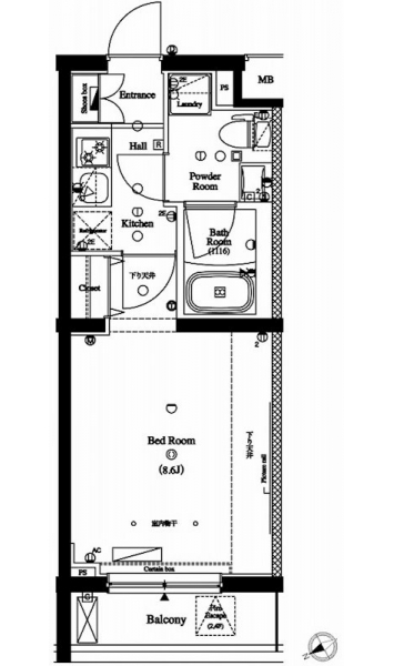 | 専有面積 | 25.83m² | バルコニー面積 | 3.57m² |
