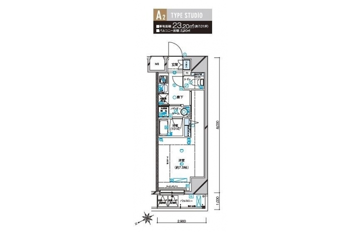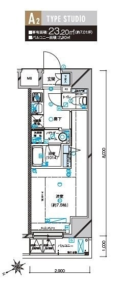 | 専有面積 | 23.20m² | バルコニー面積 | 2.05m² |