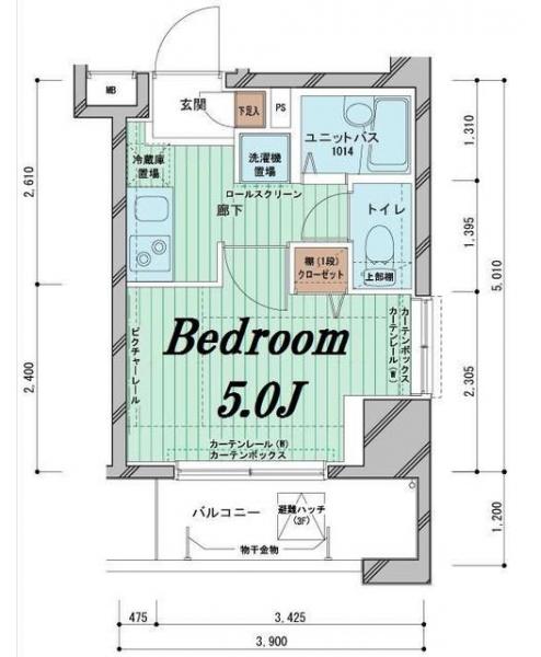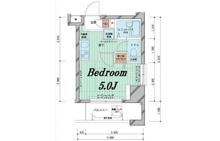 K 1.5 畳 洋室 5 畳 |
