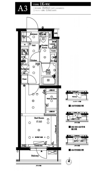 | 専有面積 | 25.95m² | バルコニー面積 | 3.19m² |